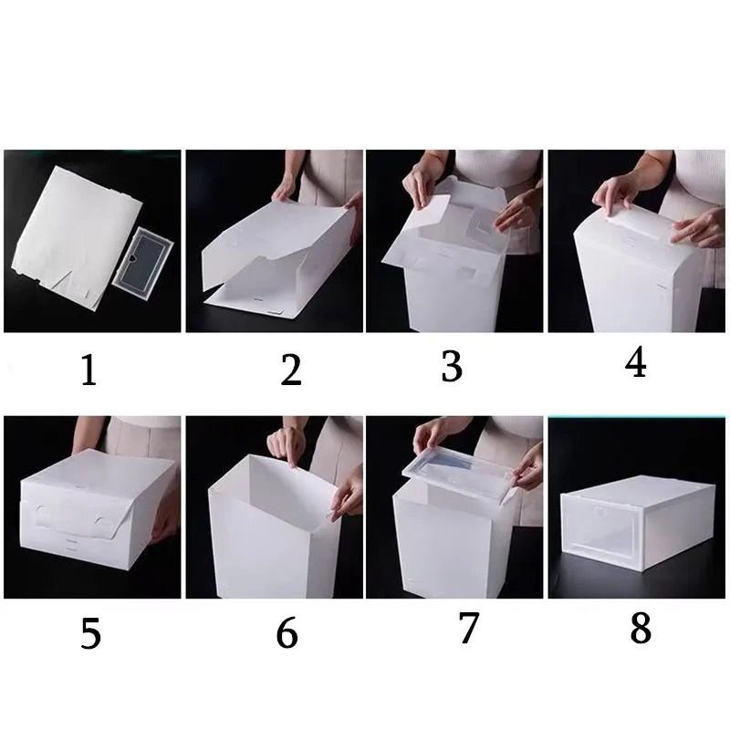 - Clear shoe boxes with lids stackable: Clear shoe boxes with lids allows for identification of contents quickly, easy to open and staying closed well. Easy to assemble. According to the video or instruction manual, assemble one shoe box only takes 20 seconds. Constructed of sturdy polypropylene, these ventilated shoe organizers will safely protect your high-end sneakers.