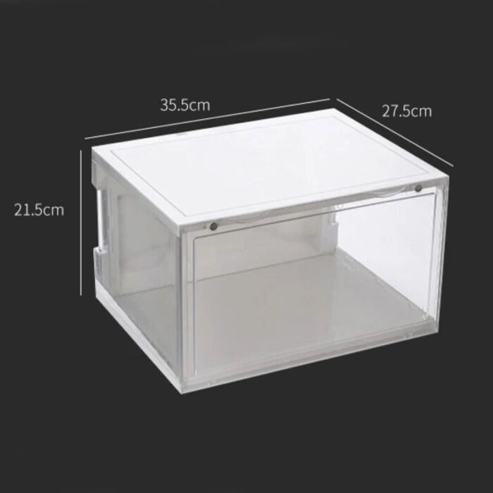 - Drop front shoe box: Front door design, easy to take out and store shoes, Ventilation holes of back frame allow for air circulation, odor prevention effectively. Sneaker storage box waterproof and dustproof.