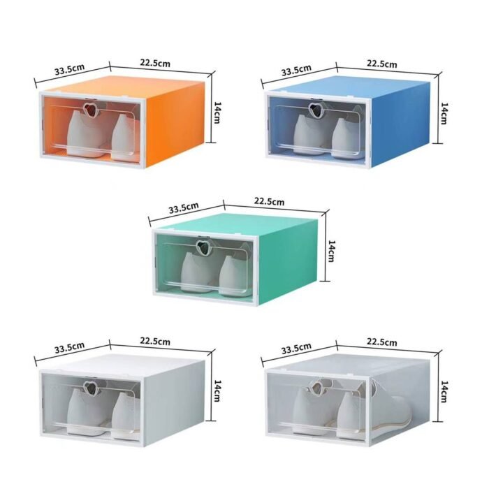 shoe containers is made of high-quality PP plastic and the door frame is made of hard plastic. Practically designed with rear ventilation holes to allow air circulation and odor prevention